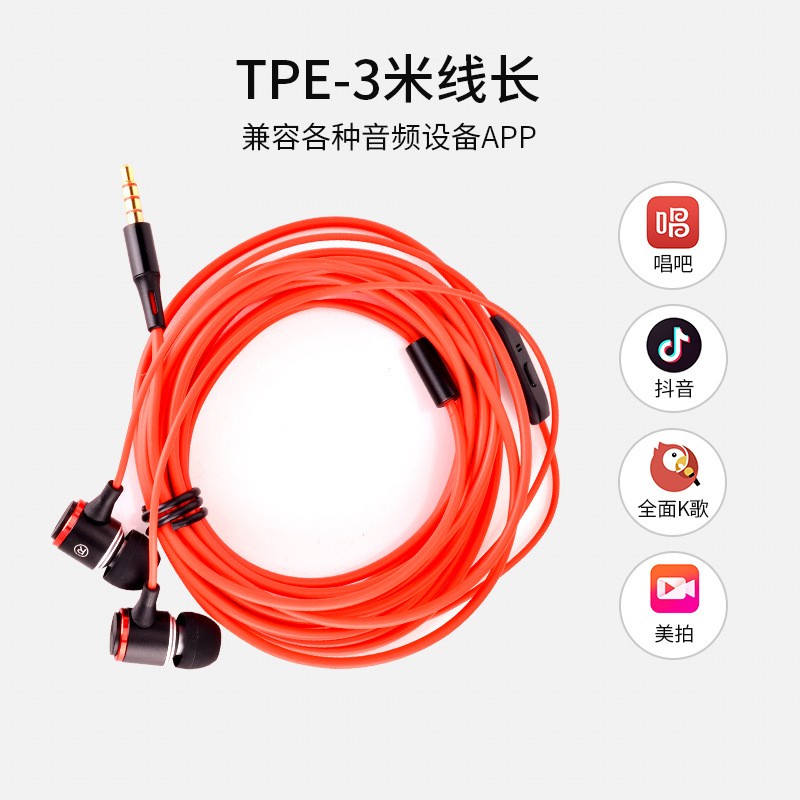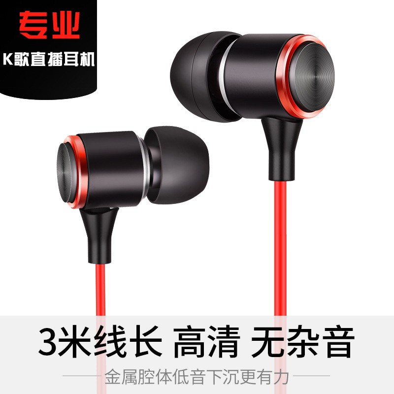 3米K歌耳機(jī)帶麥立體聲重低音安卓通用錄音入耳式金屬耳塞新品